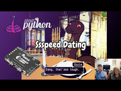 In Ssspeed Dating, the CircuitPython mascot, Blinka, hosts the evening as you meet one on one with 6 snakes with unique personalities (and voices!). You are tasked with being truthful and picking the answers to their questions that best fit you. Once the final buzzer has gone off, you might just find that one of the snakes has taken a liking to you…